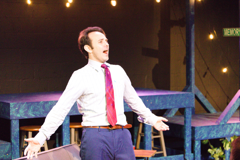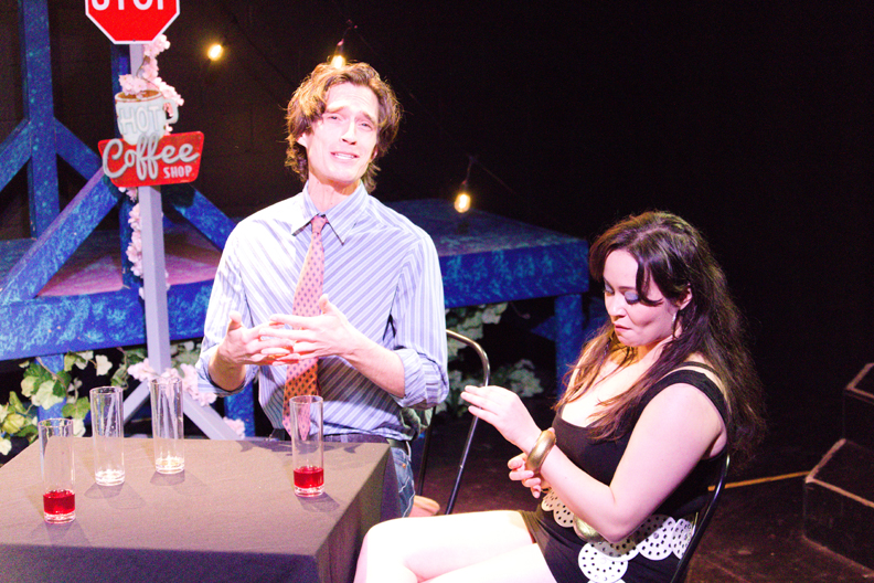 Other scenic elements designed by Rody Villegas and spot-sensitive lighting designed by Stephaney Knapp add to filling the intimate space to the max.